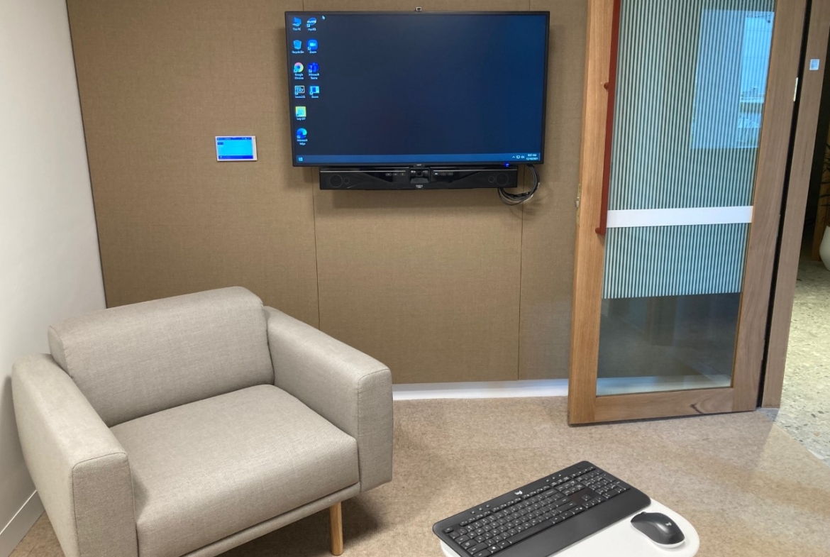 Efficient Small Educational Meeting Room: This space offers a practical setup for meetings with 1-4 participants. It features a single display and Innomate’s Space CE technology with 2 sources, including Zoom PC integration and laptop input. The room, equipped with Yamaha audio and Crestron control systems, supports BYOD designed for seamless, small-scale collaborative meetings and it has seamless AV management through Innomate’s Innomesh platform, providing robust AV and UC support with proactive monitoring through AVaaS and UCaaS solutions.