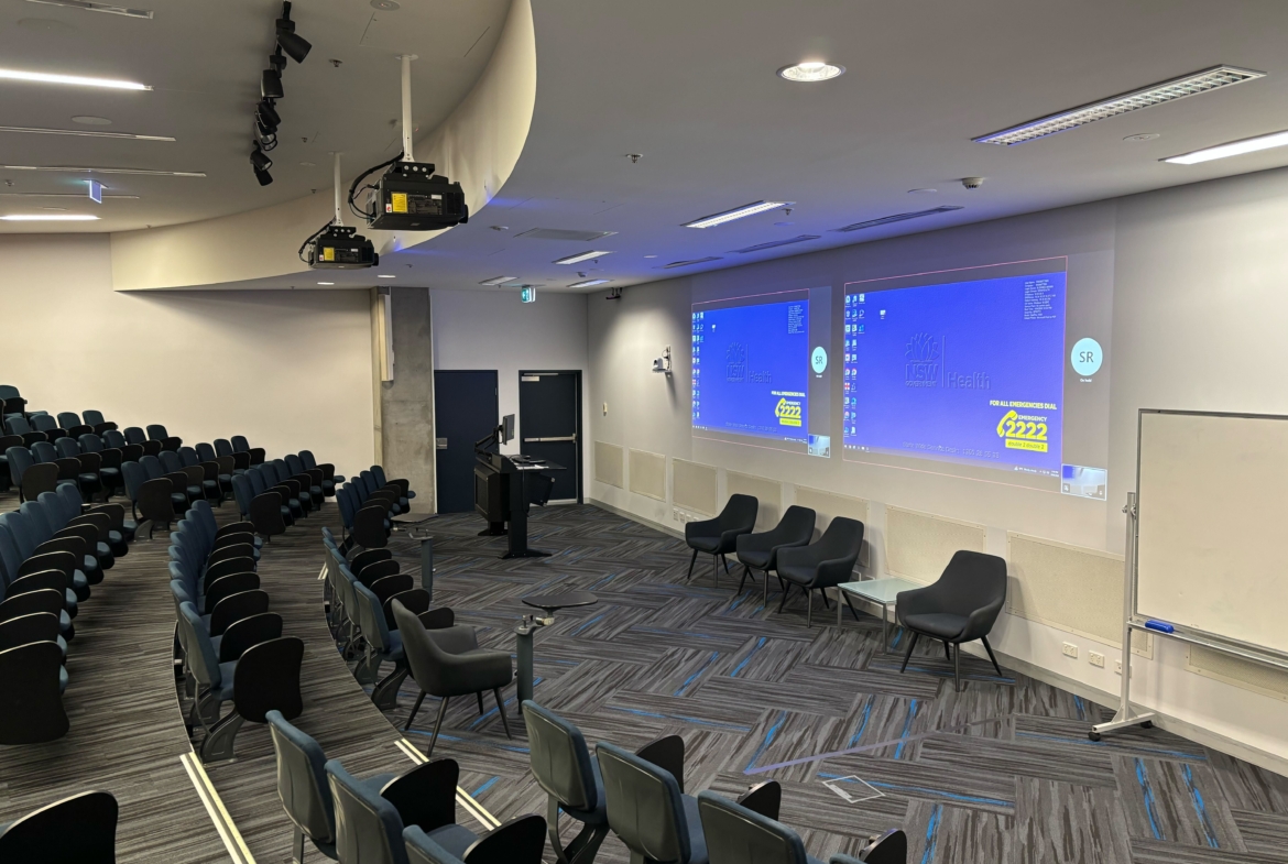 The Large Auditorium, at NSW Health, is an expansive, state-of-the-art AV space designed to accommodate over 200 attendees. It is ideal for educational seminars, conferences, and large-scale presentations, offering a seamless and immersive experience for both in-person and remote participants. This auditorium features two high-performance NEC projectors. The QSC audio system, including ceiling-mounted Shure microphones, provides crystal-clear sound, enhancing the overall audio experience. Integrated video conferencing capabilities are supported by three Panasonic PTZ cameras, making it easy to connect with remote audiences. The room supports wireless presentations via the Barco system, along with BYOD connectivity, enabling presenters to use their own devices with ease. The AV system is controlled through Crestron touch panels, offering intuitive and efficient management of all room functions. Innomate’s Innomesh platform powers this auditorium, delivering reliable AV and unified communications support, along with proactive monitoring and management through AVaaS and UCaaS solutions.