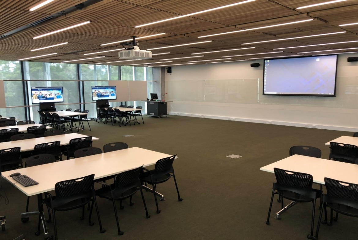 The Collaborative Learning Space at QUT, accommodating up to 48 individuals, is ideal for interactive learning and group collaborations. Equipped with advanced AV and UC technologies, the room features a Panasonic projector with a motorized screen, Shure ceiling microphones, and a Revolabs wireless microphone for superior audio-visual support. An AMX touch panel and QSYS processor enhance control and automation, while the Cisco network switch ensures seamless connectivity. The space also includes a Lumens document camera for real-time sharing. Powered by Innomate’s Innomesh platform with AVaaS and UCaaS, this room guarantees a seamless and productive learning experience, deployed across three rooms at QUT.