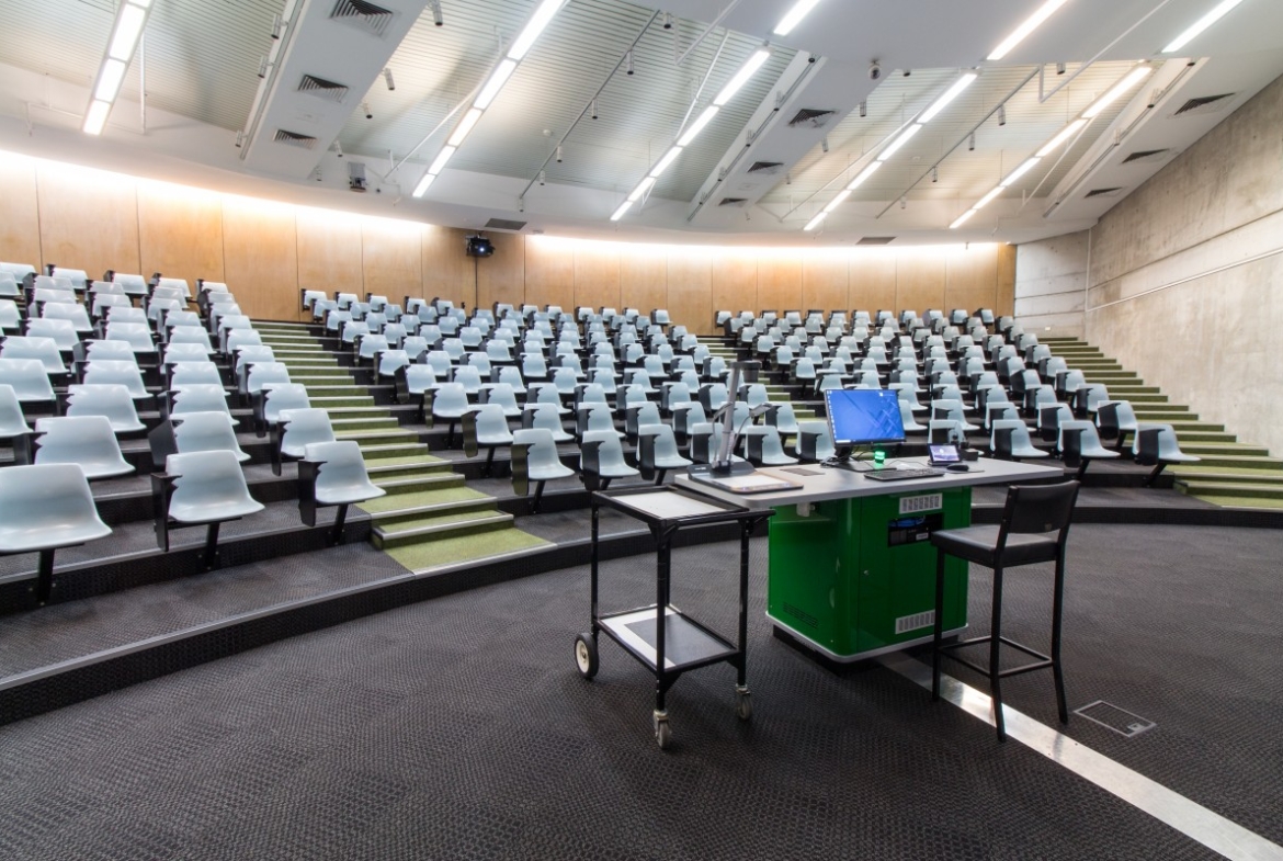 The Large Auditorium at QUT is a state-of-the-art teaching space designed to accommodate up to 259 attendees. This auditorium is perfect for lectures, presentations, and large-scale educational events, featuring advanced audio-visual and unified communications (UC) technologies. The auditorium boasts a Panasonic projector, providing vibrant and sharp visual displays. An AMX touch panel offers intuitive control of the AV systems, while the Shure microphone receiver and wireless microphones ensure clear and reliable audio capture. To enhance sound quality, the space includes a BiAmp Tesira DSP, delivering exceptional audio clarity. Additionally, an Echo 360 content recorder is available, making it easy to capture and access session recordings. The room is equipped with Minrray cameras for high-definition video capture and a Lumens document camera for live document viewing and presentations. A Microsoft Wireless Display Adapter supports seamless BYOD (Bring Your Own Device) presentations, facilitating versatile connectivity options. The auditorium is fully integrated with the Innomesh platform, offering comprehensive AV Room Control, AV Room Monitoring, and AV Remote Monitoring and Management. This setup supports unified communications via AVaaS (Audio-Visual as a Service) and UCaaS (Unified Communications as a Service), ensuring a seamless and reliable AV experience.