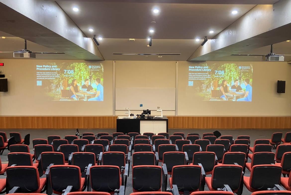 The Large Dual Screen Theatre is a premium teaching space designed for up to 220 attendees, perfect for large lectures and hybrid learning. Featuring dual Sony projectors, Crestron touch panel, and BiAmp Tesira DSP for superior audio and visual performance, this room ensures seamless presentations and remote collaborations. Equipped with Shure microphones, content recording, and Sony conferencing cameras, it supports both live and virtual participants. Integrated with Innomate’s Innomesh platform, it offers advanced AV monitoring and management, ensuring reliability across its 18 deployments. Ideal for educational and professional events requiring high-end AV solutions.
