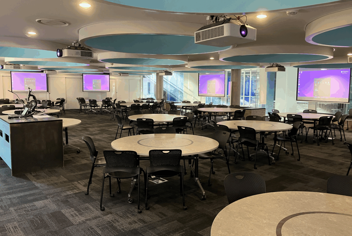 The T066 Teaching Collaborative Space at UQ is a large-capacity, AV-enabled environment designed for interactive teaching, seminars, and hybrid learning. With seating for over 100 participants, it supports a range of modern pedagogical approaches with an emphasis on flexibility, visibility, and accessibility. Powered by Innomate’s Innomesh platform, the room benefits from centralised management and support delivered through AVaaS and UCaaS services. Multiple high-resolution displays and projectors ensure clear visuals across the room. A central touch interface allows instructors to easily control lighting, blinds, and source selection. Integrated recording and streaming tools support hybrid delivery, while assistive listening systems ensure the space is accessible for all participants. With support for both PC and BYOD inputs, the T066 is a flexible, enterprise-grade solution. Already deployed in more than 180 rooms, it offers a consistent and reliable AV experience—backed by the Innomesh AV SaaS Platform—designed to meet the demands of large-scale teaching environments.
