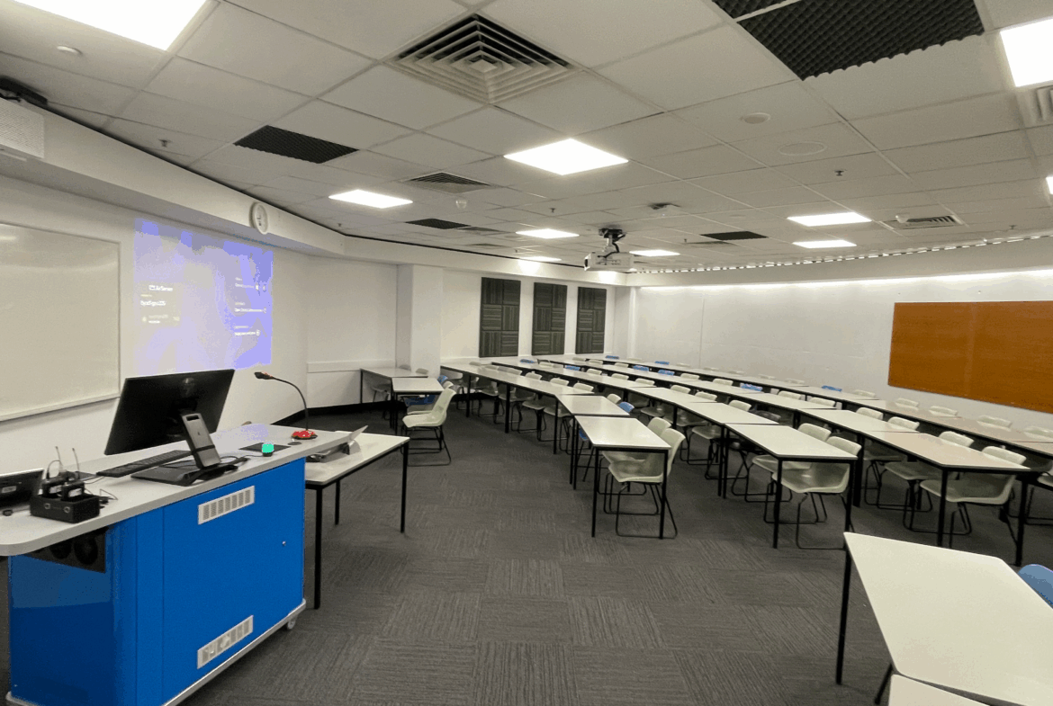 The T075 Hybrid Digital Teaching Station at QUT is a professional audio visual and unified communications (AV/UC) solution designed for hybrid learning spaces of up to 80 participants. It combines high-quality projection, professional video capture, and integrated content recording to support both in-person and remote teaching. Crystal-clear audio with wireless microphones and adaptive DSP ensures every participant can hear and be heard, while automated room sensors and a centralised touch interface make control simple and efficient. BYOD support and AVoIP switching allow seamless integration of laptops, PCs, and network-based collaboration tools. Powered by Innomate’s Innomesh platform, the T075 delivers AVaaS and UCaaS on a single platform with proactive AV room control, monitoring, and remote management. Deployed in 16 rooms at QUT, it provides a scalable, future-ready teaching solution that enables educators to deliver engaging, accessible, and reliable hybrid learning experiences.