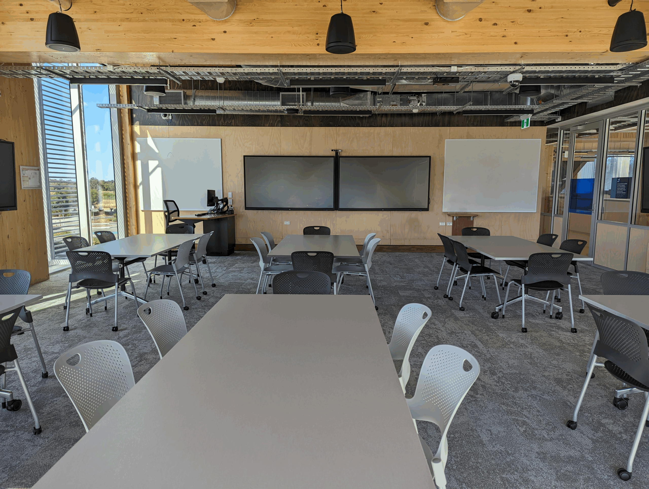The T076 Innovative Learning Space at USC are medium-capacity teaching and collaboration rooms designed for up to 36 participants. Purpose-built for education and training, they combine high-performance audio visual systems, unified communications, and AV-over-IP technology to deliver an engaging, future-ready learning environment. The room features four large interactive displays, high-definition camera capture, ceiling microphones, and multiple loudspeaker zones for clear audio and video throughout. Wireless presentation, BYOD support, and simple PC or laptop inputs provide flexibility for both teaching and group collaboration. Integrated lighting and blinds control with preset modes create an optimal environment for lectures or workshops. All functions are managed through an intuitive touch panel, with Innomate’s Innomesh platform enabling unified communications, AV room control, proactive monitoring, and remote management through AVaaS and UCaaS. Deployed across multiple spaces, the T076 design ensures reliability, scalability, and seamless performance for modern education environments.