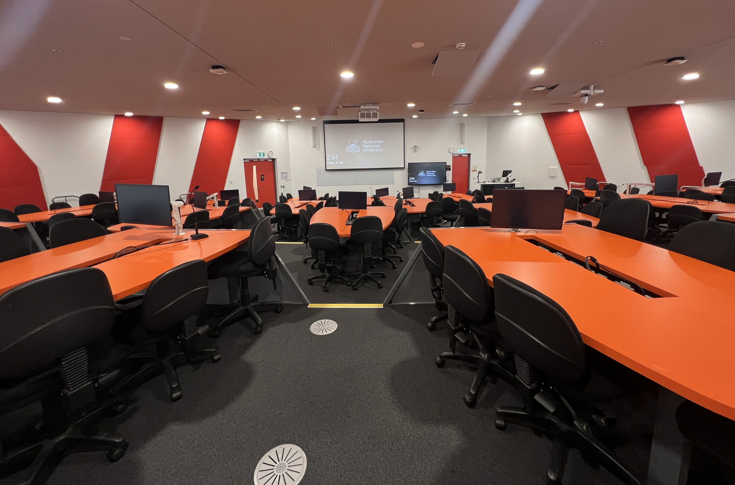 The T087 Tutorial Room at ANU is a high-capacity active learning space designed for up to 100 participants, seamlessly integrating advanced Audio Visual / AV and Unified Communications technologies over a robust Crestron NVX Audio Video over IP (AVoIP) architecture. Built to support pod-based collaborative learning, the room features flexible video routing to a primary Panasonic laser projector and a CommBox interactive display, alongside 21 student stations equipped with Samsung displays and Audio Technica boundary microphones. Premium audio is managed by a QSC Q-Sys DSP infrastructure operating on a Dante network, delivering crystal-clear sound through Renkus-Heinz speakers, while comprehensive lecture capture is powered by dual Panasonic PTZ cameras, a Wolfvision document camera, and an Echo 360 system. Users benefit from intuitive AV Room Control via a central Crestron touch panel, complete with flexible BYOD support for effortless presentation and connectivity. Deployed to establish a high-tier learning standard, the T087 is fully supported by Innomate’s Innomesh AV SaaS Platform to guarantee unparalleled reliability. By providing proactive AV Room Monitoring and comprehensive AV Remote Monitoring and Management, Innomesh leverages scalable AVaaS and UCaaS models—utilizing space metrics from Axis network cameras and occupancy sensors—to ensure a fully integrated, easily managed teaching environment with minimal downtime.